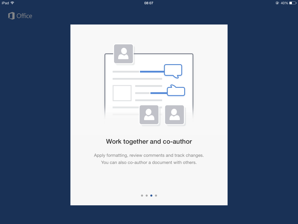 At the end of this article I will present how the co-authoring works using Microsoft Word for iPad app. I will take a relative complex situation where three users are editing the same file in the same time.