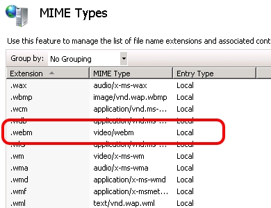 1. Verify if IIS has the MIME Types properly configured for .mp4, .ogv, .webm.