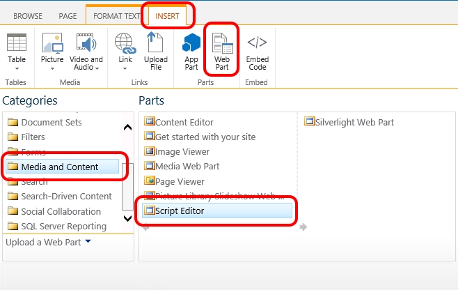 4.2. SharePoint 2013 way – Script Editor web part – Insert the HTML5 video player into your page.