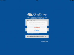 Using Safari I am connecting to the OneDrive personal site and test the device connectivity with the SharePoint 2013 farm.
