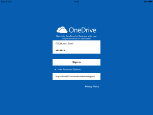 The device is able to communicate with the personal OneDrive site. Now let’s configure OneDrive for Business 1.2.2 (iOS).