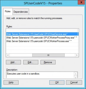 With WSRM I am able to configure the processes from each SharePoint server to run in the limits I specify. For example I want the processes associated to the Search Role (Search Service Application, noderunner.exe, mssdmn.exe, mssearch.exe) to run and be ready to be used anytime, but in the same time to use less resources compared with my SharePoint Web Applications (w3wp.exe processes). I want the interaction with my Web Applications (usually at least 3 per farm) to be fast (because this represents my 90% interaction with SharePoint) and the Search Role to be fully ready to be used, but to run in such way to not “eat” all my resources. Yes, I know about Set-SPEnterpriseSearchService, but WSRM does a better job and more than that can work with any kind of process (so no more frustration in case the application you use cannot be configured to use a maximum amount of memory and CPU).